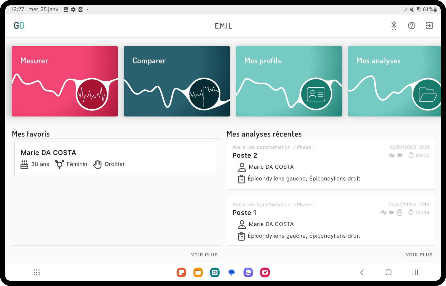 E.M.I.L est une solution d’analyse clé en main qui peut être utilisée dans n’importe quel environnement terrain et sur toutes les populations (sportifs, patients, opérateurs, etc).